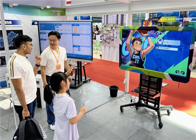 展会期间,C-Life数智运动展区吸引了大量教育工作者、学生和家长驻足体验。孩子们在屏幕前踊跃参与体感游戏,欢声笑语不绝于耳,成为展会现场最具人气的互动区域之一。