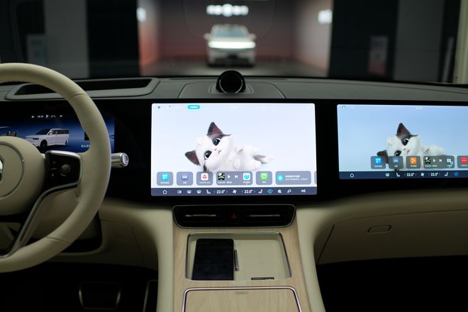 座舱内,HarmonyOS 4系统驱动三屏互联架构:12.3英寸仪表屏+15.6英寸中控屏+16英寸副驾娱乐屏,支持三指滑屏多任务流转。AI助手小艺依托盘古大模型,实现自然语义深度交互。更值得关注的是全场景空间计算能力:前排搭载68英寸AR-HUD,融合导航与辅助驾驶信息;后排配备32英寸电动升降投影幕布,结合HUAWEI MagLink实现多设备互联,三排乘客可独立控制娱乐系统。NVH静谧工程配合19单元HUAWEI SOUND音响,构建沉浸式移动空间。