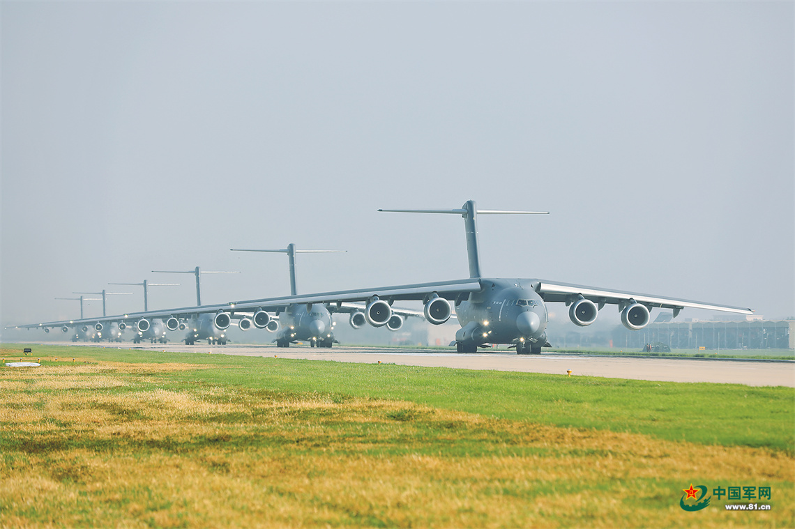 站在停机坪上,古人遐想的画面铺展在记者眼前——一架架整齐列阵的运-20运输机,仿佛瞬间便能扶摇而上、直冲云霄。
