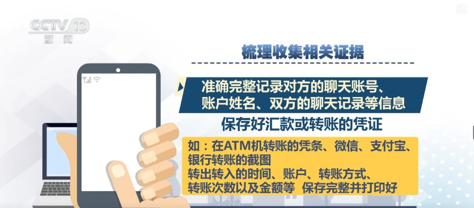 然后记住抓紧梳理收集相关证据,准确完整记录对方的聊天账号、账户姓名、双方的聊天记录等信息;保存好汇款或转账的凭证,如在ATM机转账的凭条、微信、支付宝、银行转账的截图;转出转入的时间、账户、转账方式、转账次数以及金额等,保存完整并打印好。最后,您需要尽快前往最近的派出所,进行现场报案。在这里,您要配合公安机关做好询问笔录,提供相关证据。