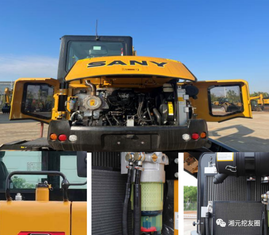 液压油箱顶部外露,液压油箱呼吸阀、加油口外置,方便后期维护。进气系统优化,空气滤清器的位置布置在发动机舱,后期维护更加便捷。